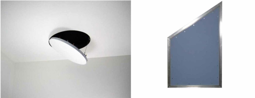 Our Rondo access panel is designed for circular access, but BAUCO has also built notched, angled, triangular, octagonal, rhomboid, T-shaped, L-shaped, and other non-standard shapes to match surrounding design details.
