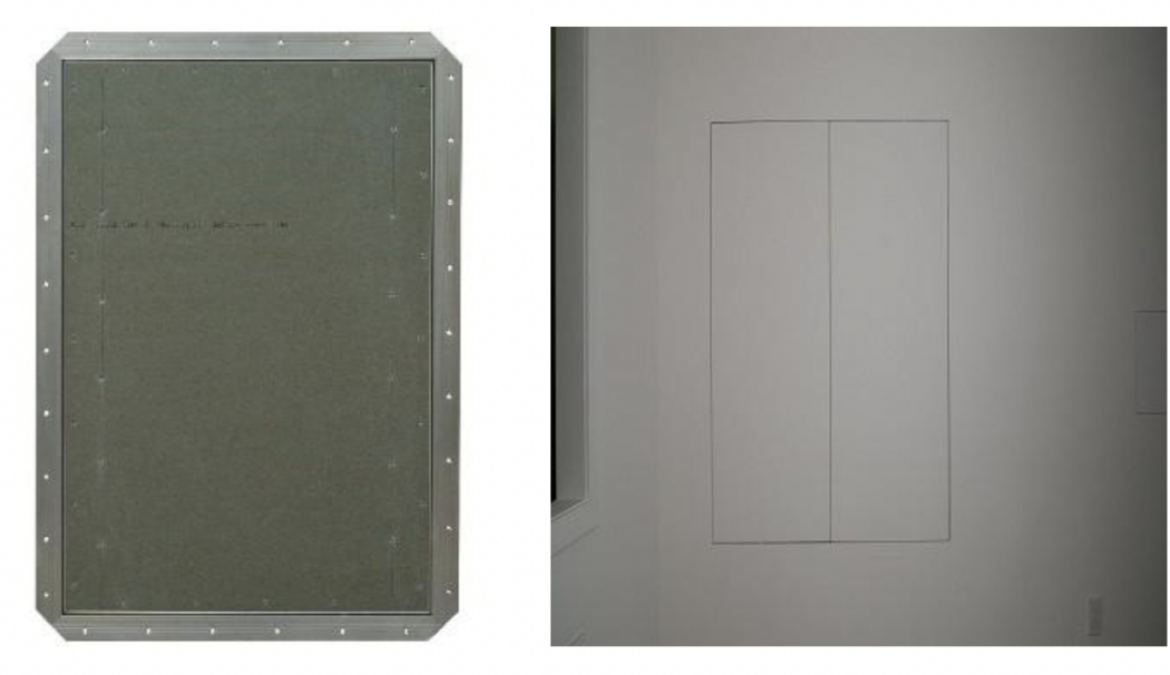 The BAUCO Plus II, our most versatile product, comes in standard sizes from 6” x 6” to 24” x 36” and can be customized for access of any size. A custom sized example would be a 32”x 62” ceiling access panel – large enough to remove an HVAC unit if necessary. The BAUCO Plus II has concealed mounting frames and hardware and can be finished with same materials as the wall or ceiling, allowing it to disappear into its surroundings, whether paint, wallpaper, tile, or millwork.